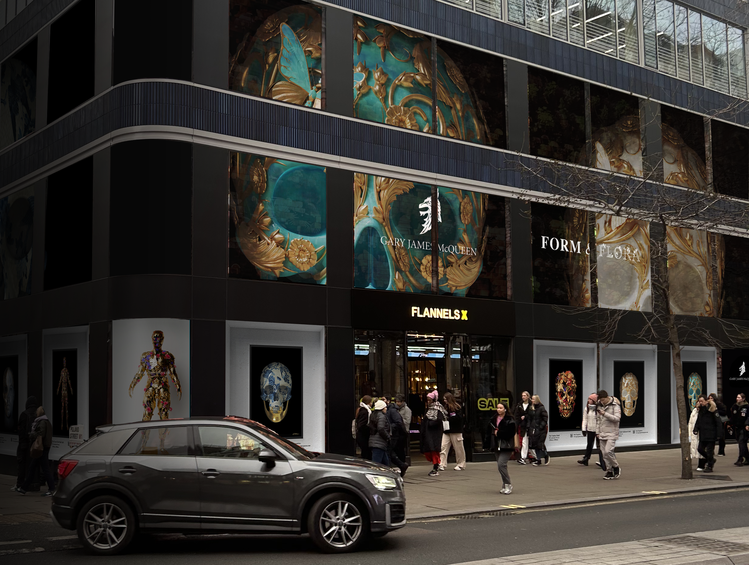 Throughout March and alongside the new collection, Gary James McQueen will present his first digitally immersive exhibition at W1 Curates, a public art platform located at Flannels flagship store on Oxford Street